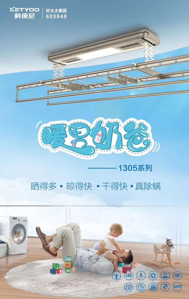 特别为母婴家庭设计,6杆全能晾,专属母婴夹,可晾68件衣物,更有除螨杀菌、快速干衣等功能,满足晾晒的种种需求,不愧是好太太们的专属“暖男”!