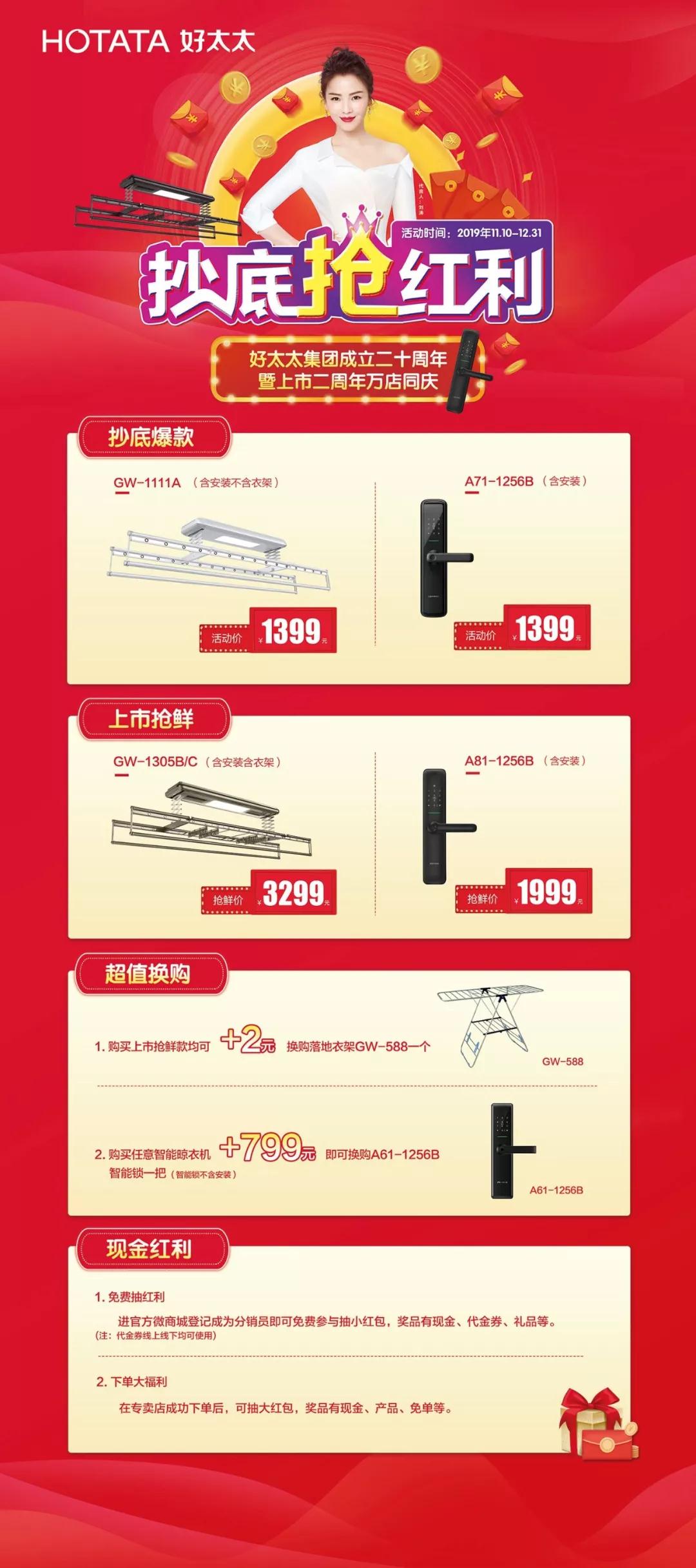 新品升级,感恩同行,好太太集团盛大开启成立二十周年暨上市二周年“抄底抢红利”活动,折扣力度大,福利丰厚,全国统一万店同庆,为广大消费者送上感恩豪礼,多重惊喜,等你来~