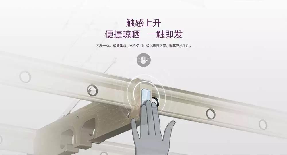 基于用户真实的使用场景,满足晾晒方式简易化、智能人机交互的需求,锦尚系列智能晾衣机首创触感上升及VLED显示黑科技。