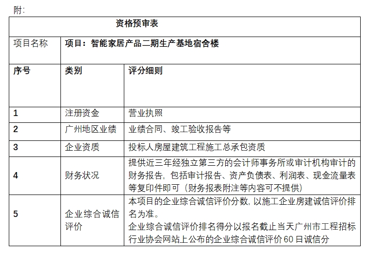 1、招标项目名称: 智能家产品二期生产基地—宿舍楼。