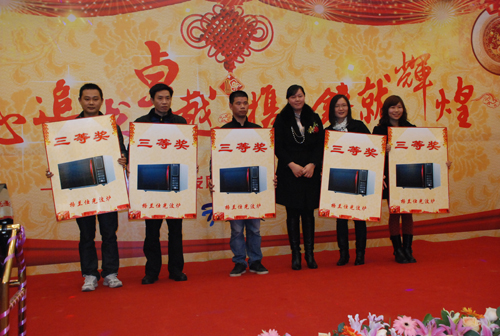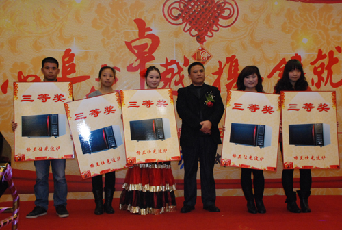 为了让大家尽兴而归,年会上自然也少不了抽奖这个环节,随着三等奖、二等奖、一等奖、特等奖的抽取,不断掀起年会的高潮。公司领导与员工热情互动,让歌声、掌声、欢呼声一直在会场上荡漾。