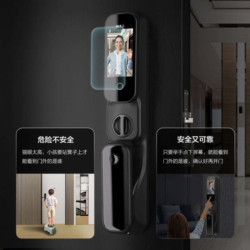 3D结构光人脸识别 | 4寸IPS高清彩屏 | 161°超广角猫眼