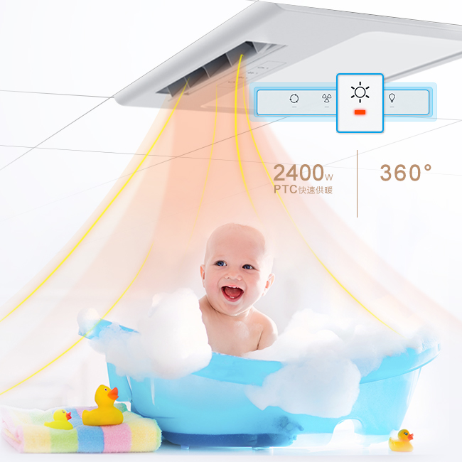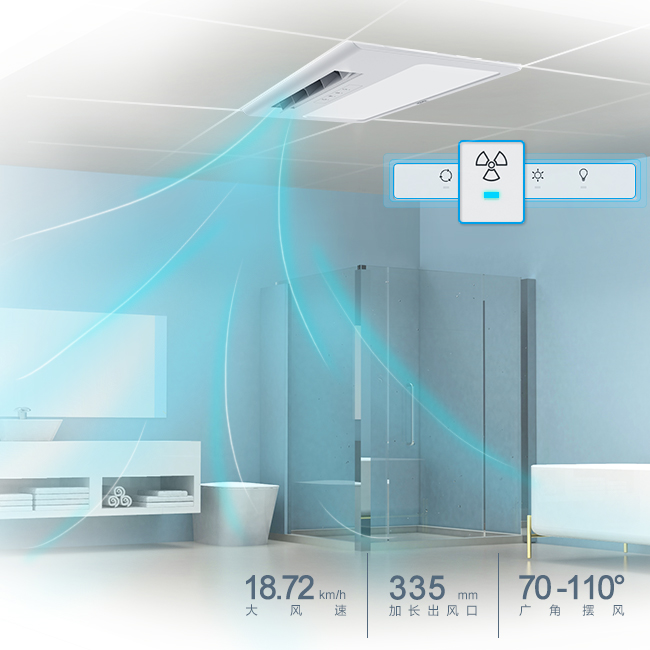 强劲送暖,均匀布温,浴室温度快速上升